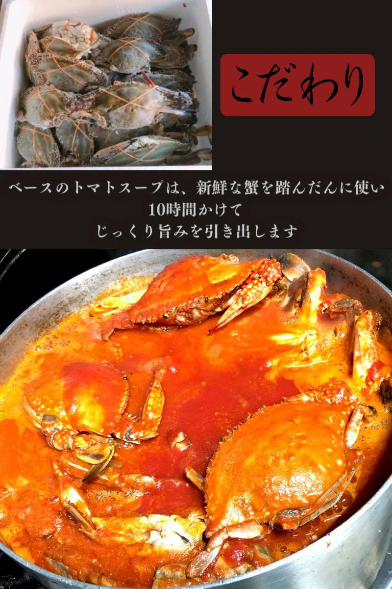 ニンニク、アンチョビ、しらす、干しエビをじっくり火入れし、そこに10時間煮込んだカニのトマトスープを加え、海まるごと詰め込んだスペシャルな自家製スープに仕上がりました。