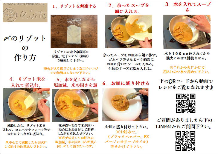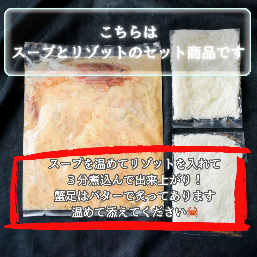 そうして出来上がった贅沢なスープと共に付属のリゾットを煮込んでいただければ、一粒一粒に旨味が凝縮され、スプーンが止まらない事間違いなしです!!